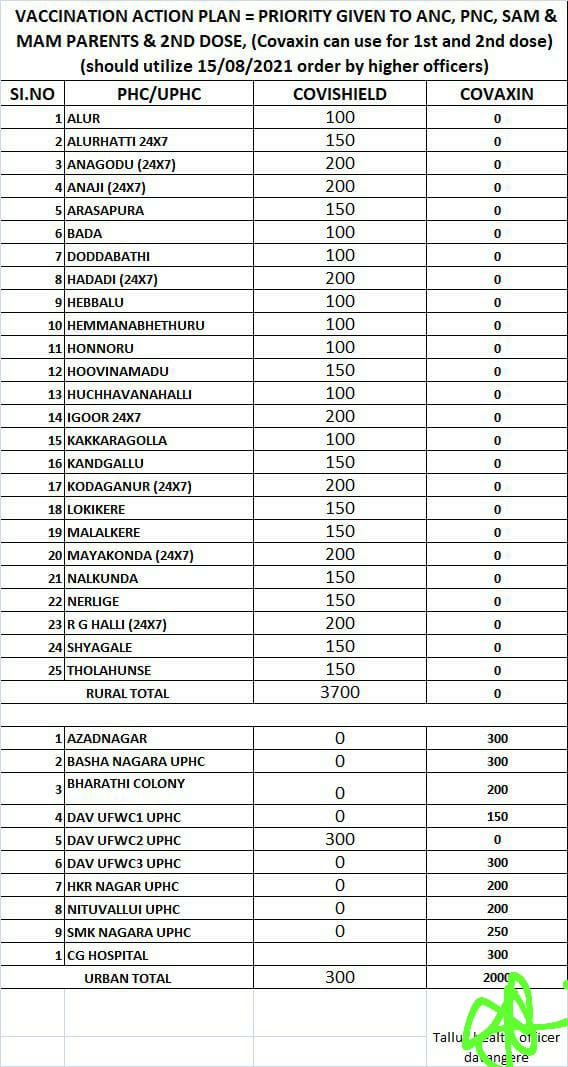 ಆಗಸ್ಟ್ 15 ರಂದು ದಾವಣಗೆರೆಯಲ್ಲಿ ಬೃಹತ್ ಲಸಿಕಾಕರಣ: 6000 ಡೋಸ್ ಲಸಿಕೆಯ ಸಂಪೂರ್ಣ ಮಾಹಿತಿ ನೋಡಿ👇