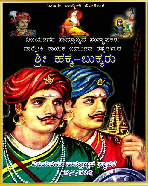 ಹಕ್ಕ-ಬುಕ್ಕರ ವಂಶಾವಳಿ ಗಮನಿಸುವುದಾದರೆ ಮುಮ್ಮಡಿ ಸೀಗನಾಯಕರು ವಾಲ್ಮೀಕಿ ಸಮುದಾಯದವರು. ಅವರ ಮಗ ಕಂಪಿಲರಾಯ ಕೂಡ ನಾಯಕ. ಕಂಪಿಲರಾಯನ ಮಕ್ಕಳಾದ ಗಂಡುಗಲಿ ಕುಮಾರರಾಮ ಹಾಗೂ ಮಾರೆವ್ವ ಇಬ್ಬರೂ ಬೇಡ ಕುಲದವರು. ಇನ್ನು ಕುರಗೋಡು ಸಂಸ್ಥಾನದ ಭೂಪ ನಾಯಕ ಕೂಡ ನಾಯಕ ಸಮುದಾಯದವರು. ಭೂಪ ನಾಯಕನ ಮಗ ಸಂಗಮ ಕೂಡ ವಾಲ್ಮೀಕಿ ವಂಶಸ್ಥರು. ಸಂಗಮನಿಂದಲೇ ಮುಂದೆ ‘ಸಂಗಮ ವಶಸ್ಥ’ರ ಸಂಕುಲ ಬೆಳೆದಿದ್ದು. ಸಂಗಮ ಹಾಗೂ ಮಾರೆವ್ವ ವಿವಾಹವಾಗುತ್ತಾರೆ. ಈ ದಂಪತಿಯ ಮಕ್ಕಳೇ ‘ಹಕ್ಕ-ಬುಕ್ಕರು’. ಇವರ ವಂಶಸ್ಥರೆಲ್ಲ ವಾಲ್ಮೀಕಿ ಕುಲದವರಾದ ಮೇಲೆ ಹಕ್ಕ-ಬುಕ್ಕ ಮಾತ್ರ ಹೇಗೆ ಬೇರೆ ಕುಲದವರಾಗುತ್ತಾರೆ? ಇದನ್ನ ಅರಿತು ಏಪ್ರಿಲ್ 18ರಂದು ಹಕ್ಕ-ಬುಕ್ಕರು ನಿರ್ಮಿಸಿದ ‘ವಿಜಯನಗರ ಸಂಸ್ಥಾಪನಾ ದಿನ’ವನ್ನ ರಾಜ್ಯದ ಎಲ್ಲ ನಾಯಕ ಸಮುದಾಯದವರ ಮನೆ, ಕಚೇರಿ, ಗ್ರಾಮ, ತಾಲೂಕು ಹಾಗೂ ಜಿಲ್ಲೆ, ರಾಜ್ಯಮಟ್ಟದಲ್ಲಿ ಕಾರ್ಯಕ್ರಮ ಆಯೋಜಿಸಿ ಹಕ್ಕ-ಬುಕ್ಕರು, ಗಂಡುಗಲಿ ಕುಮಾರರಾಮ, ಶ್ರೀಕೃಷ್ಣದೇವರಾಯ, ವಾಲ್ಮೀಕಿ, ಹಾಗೂ ಮದಕರಿ ನಾಯಕರ ಭಾವಚಿತ್ರಗಳನ್ನಿಟ್ಟು ಪೂಜಿಸುವ ಮೂಲಕ ಆಚರಿಸಬೇಕು ಎಂದು ಈ ಮೂಲಕ ಕರೆ ನೀಡುತ್ತಿದ್ದೇವೆ.