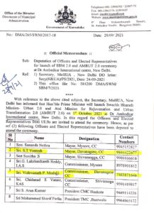 ಮೈಸೂರು, ಶಿವಮೊಗ್ಗ ಪಾಲಿಕೆಯ ಮೇಯರ್ ಗಳು ಸೇರಿ ನಗರಸಭೆ, ಸ್ಥಳೀಯ ಸಂಸ್ಥೆಗಳಲ್ಲಿನ ಅಧ್ಯಕ್ಷರು, ಆಯುಕ್ತರು ಸೇರಿದಂತೆ ಒಟ್ಟು ರಾಜ್ಯದ 13 ಜನರಿಗೆ ಆಹ್ವಾನಿಸಲಾಗಿದೆ.